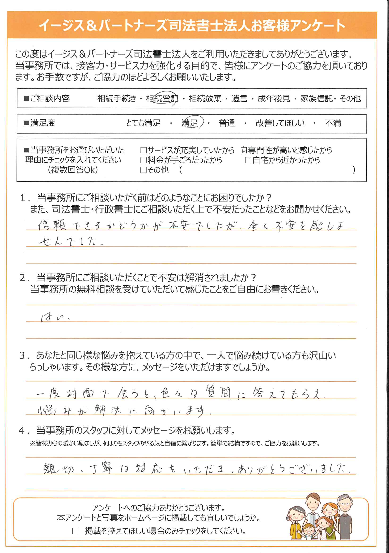 信頼できるかどうかが不安でしたが、全く不安を感じませんでした。